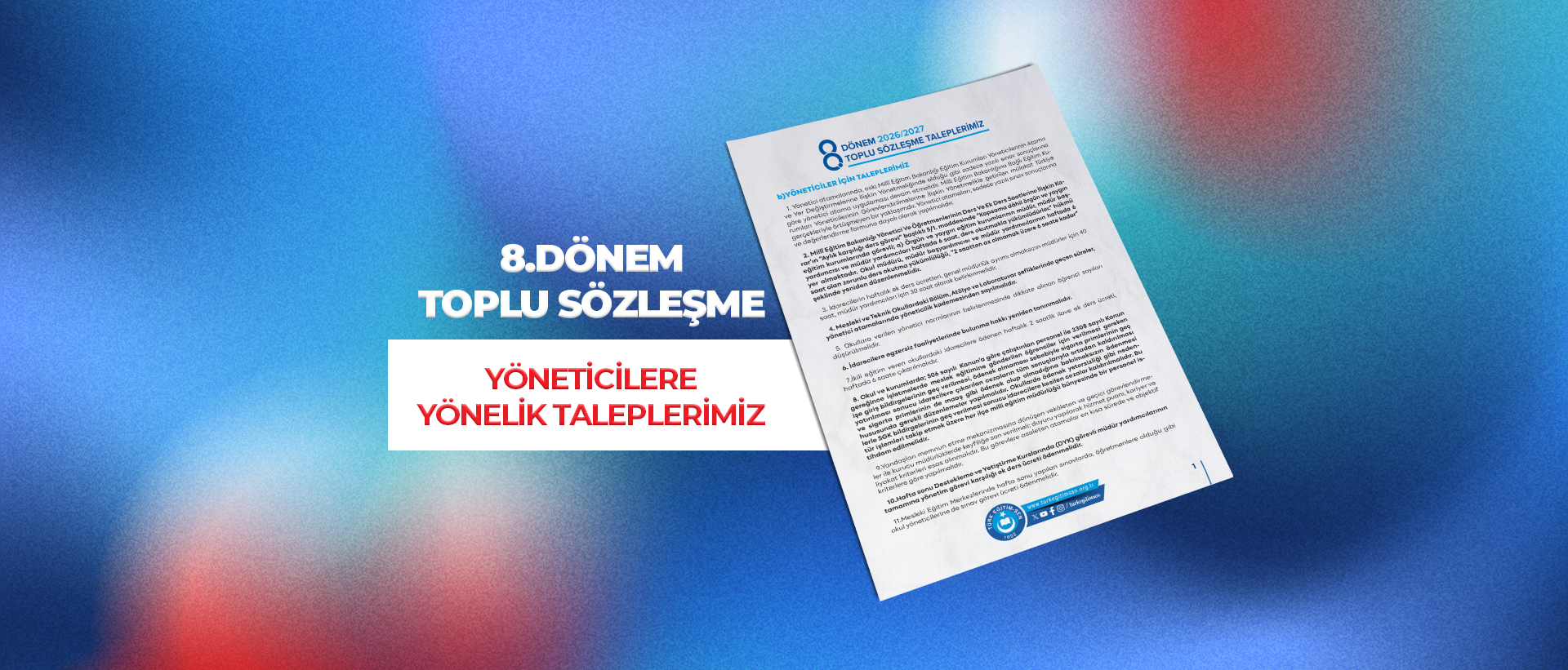 8.Dönem Toplu Sözleşme Yöneticilere Yönelik Taleplerimiz İçin Tıklayınız.
