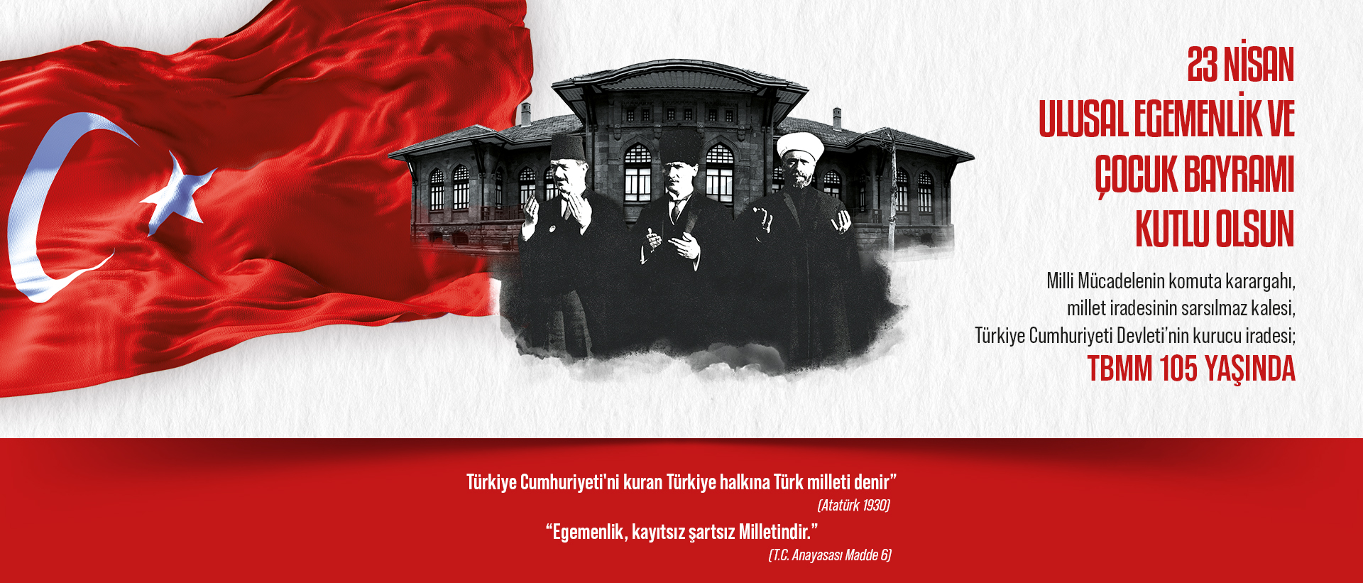 Bu idealler doğrultusunda birinci vazifesi Türk istiklâlini, Türk Cumhuriyeti’ni, ilelebet muhafaza ve müdafaa etmek olan, “Ne Mutlu Türküm Diyene” derken göğsü kabaran, Büyük Atatürk’ün açtığı yolda, gösterdiği hedeflere hiç durmadan yürüyen, şartlar ne olursa olsun kalbi tam bağımsızlık için atan yüce milletimizin 23 Nisan Ulusal Egemenlik ve Çocuk Bayramı kutlu olsun.