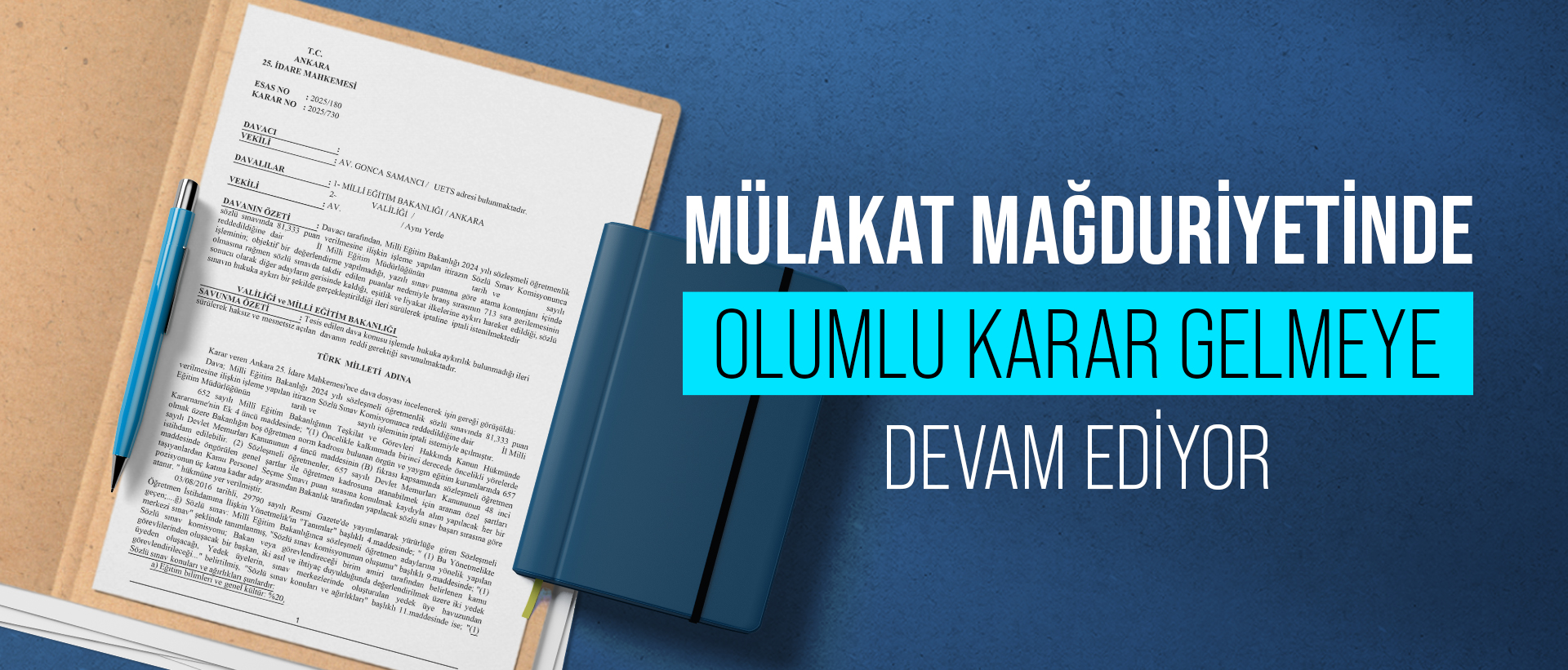 Türk Eğitim-Sen olarak mülakat mağduru adaylara sağlanan hukuki destek sonucu sendikamız avukatlarınca açılan davalarda iptal kararları gelmeye devam etmektedir.